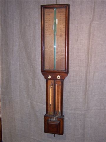 Admiral Fitzroy type barometer, very similar to the one shown on page 223 of the book on stick barometers. In totally original condition, the only damage being to one ivory knob for the left hand vernier adjustment.
