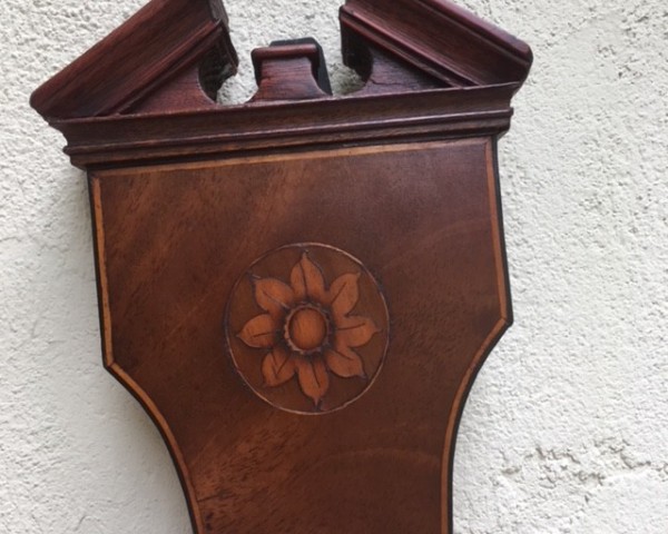 This particuar barometer has a good clean surface, with all original inlays and edge stringing, and (like all my barometers) is fully working. The mahogany veneer is a warm color, not too light and certainy not too dark, and both dials have been re-silvered; it could have a cast brass finial if desired.The maker is one of the best, Lione & Somalvico, of 125 Holborn Hill, London, and it dates to around 1815 and is priced $1700.